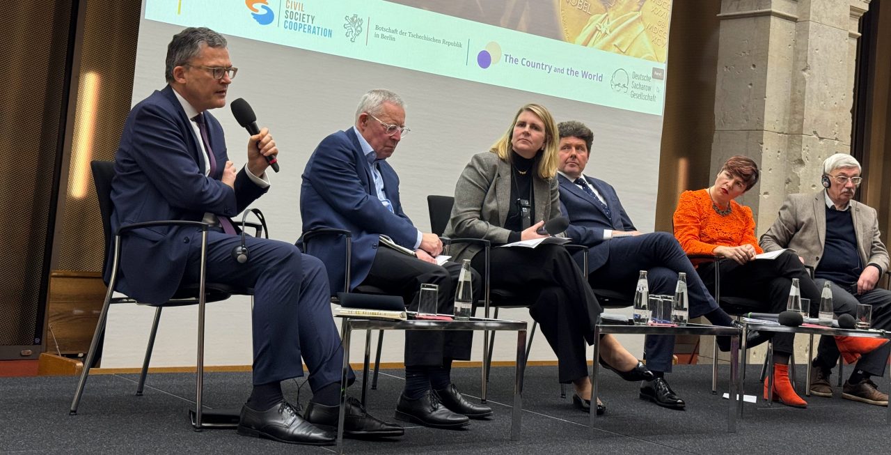 Am 10. Dezember 1975 wurde der Friedensnobelpreis an Andrej Sacharow verliehen. Der Wissenschaftler, Mitentwickler der Wasserstoffbombe und wohl bekannteste Dissident der Sowjetunion konnte den Preis nicht entgegennehmen, da Moskau ihn nicht ausreisen ließ. An seiner Stelle nahm seine Frau Jelena Bonner die Auszeichnung entgegen. Aus diesem Anlass veranstaltete die Deutsche Sacharow Gesellschaft gemeinsam mit dem Projekt Land und Welt sowie der Botschaft Tschechiens in Berlin einen Diskussionsabend mit Menschenrechtsaktivisten, Historikern und Politikern.